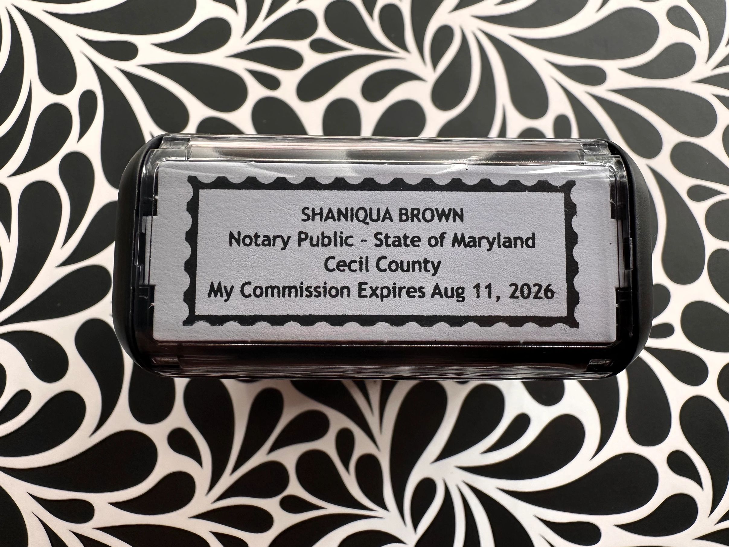 I'm available for in person appointments for anyone in Cecil County or the surrounding area. I will travel to you for all of your notary needs - hospitals, nursing homes, schools, jails, etc.